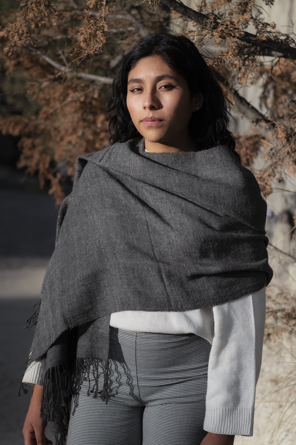 Mantilla de llama fino color gris